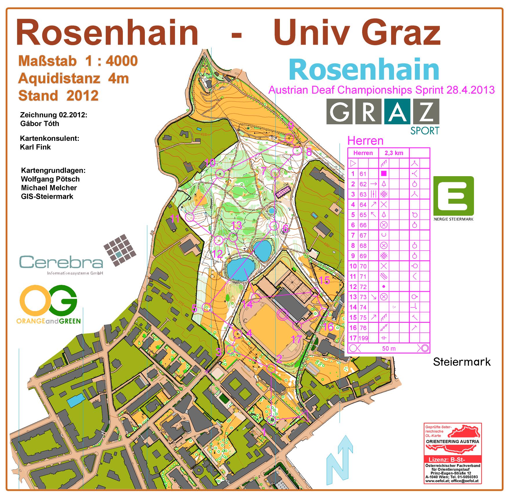 Das steile aber schön belaufbare Gelände forderte die Teilnehmer sehr. In der steirischen Wertung holte sich Martina Walch von der Sportunion Schöckl ihren ersten allgemeinen Meistertitel vor Klubkollegin Angelika Renz und Julia Gharamahni , bei den Herren gab es einen Doppelsieg für den OLC Graz mit Klaus Schgaguler und Christian Pfeifer, Andi Pölzl auf Platz 3 komplettierte das Siegerpodest als Bronzener.